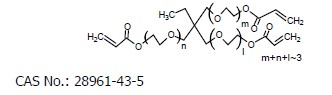 產(chǎn)品說明:ETERMER 2380-TF 是一個無甲苯高反應(yīng)性三官能基丙烯酸酯。ETERMER 2380-TF 是一個三官能基高反應(yīng)性之架橋劑,在添加自由基產(chǎn)生物質(zhì)(如光引發(fā)劑), 或暴露於游離輻射的環(huán)境下會進行聚合反應(yīng)。